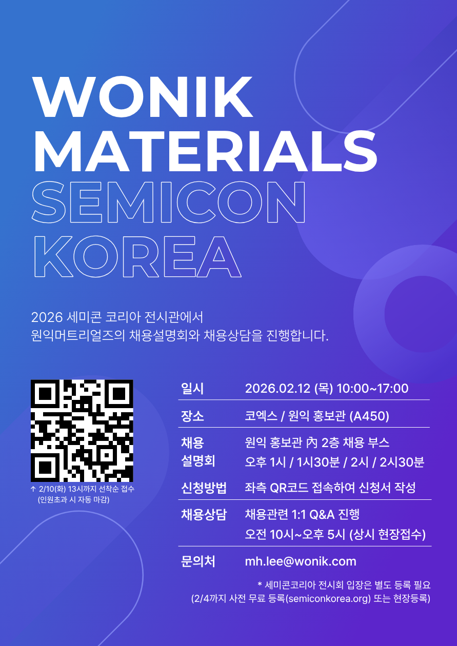 [채용/모집] 2026 SEMICON KOREA 내 원익머트리얼즈 채용부스 운영