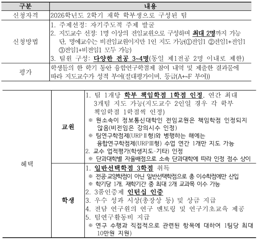 [학사] 2026학년도 2학기 융합연구학점제(URP Ⅲ형) 시행 안내